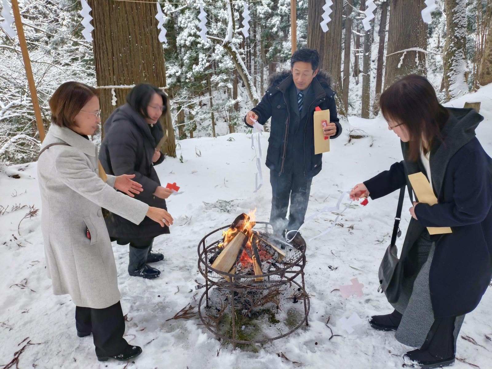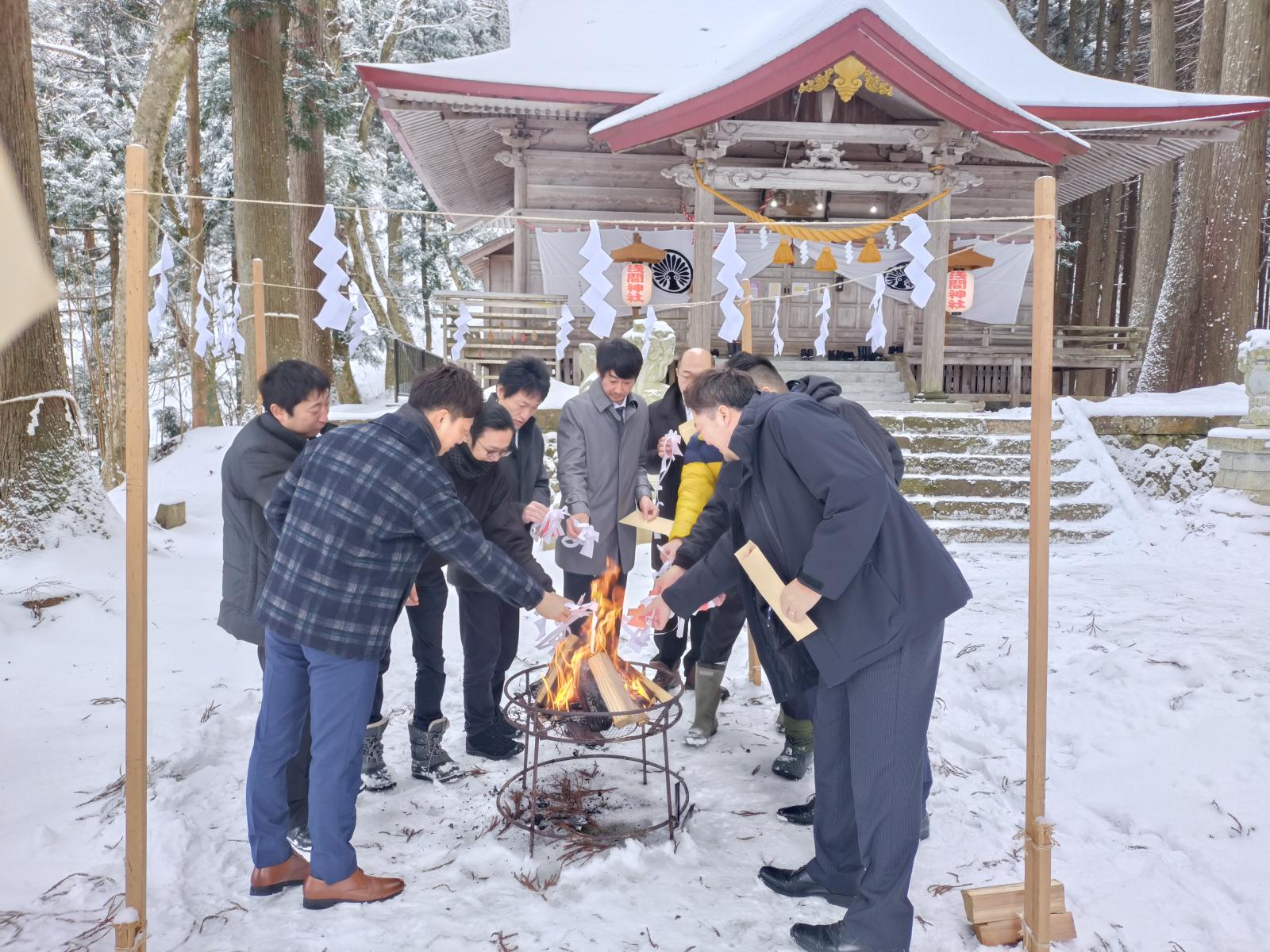 2026.01.03 浅間神社厄払い 【まちのできごと・みんなのわだい(Web版)】 1月3日(土)、藤琴地区の浅間神社で厄払い式が行われました。 今回の厄払い式には、数え42歳の男性11名と数え62歳の男女7名が参加し、宮司からお祓いを受けました。 お祓いの後、お札や御幣を受け取った参加者たちは、境内でお焚き上げをしながら今年一年の平穏を祈っていました。 ページ上部へ