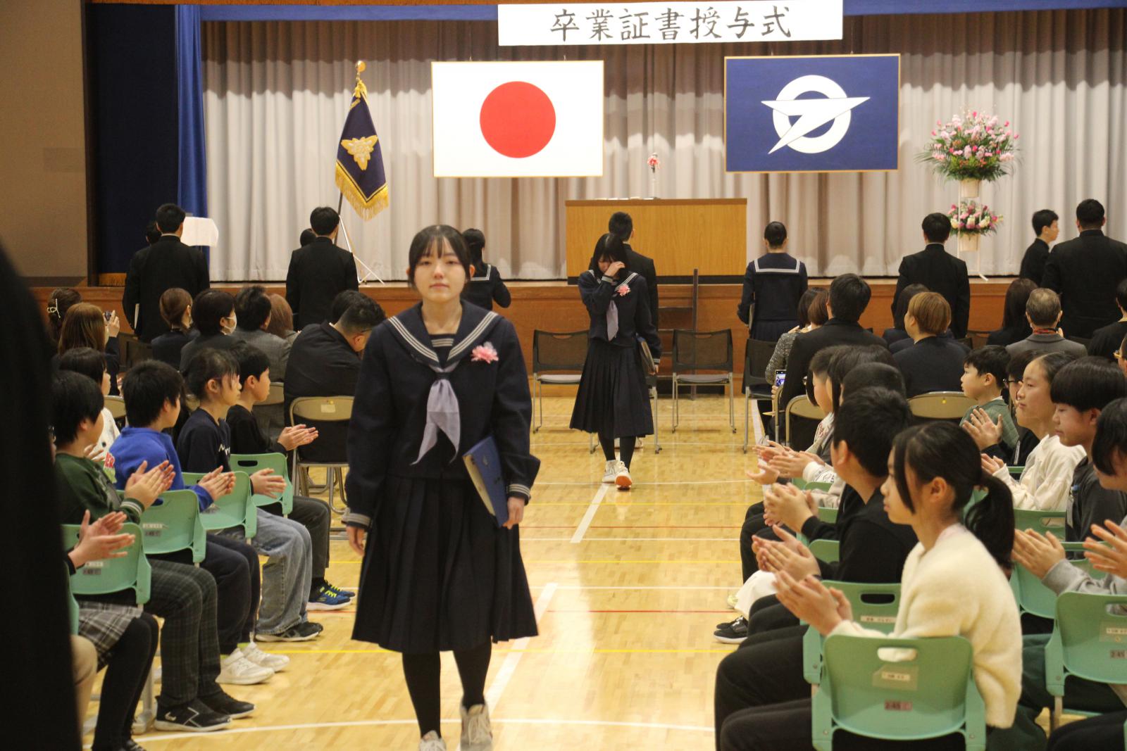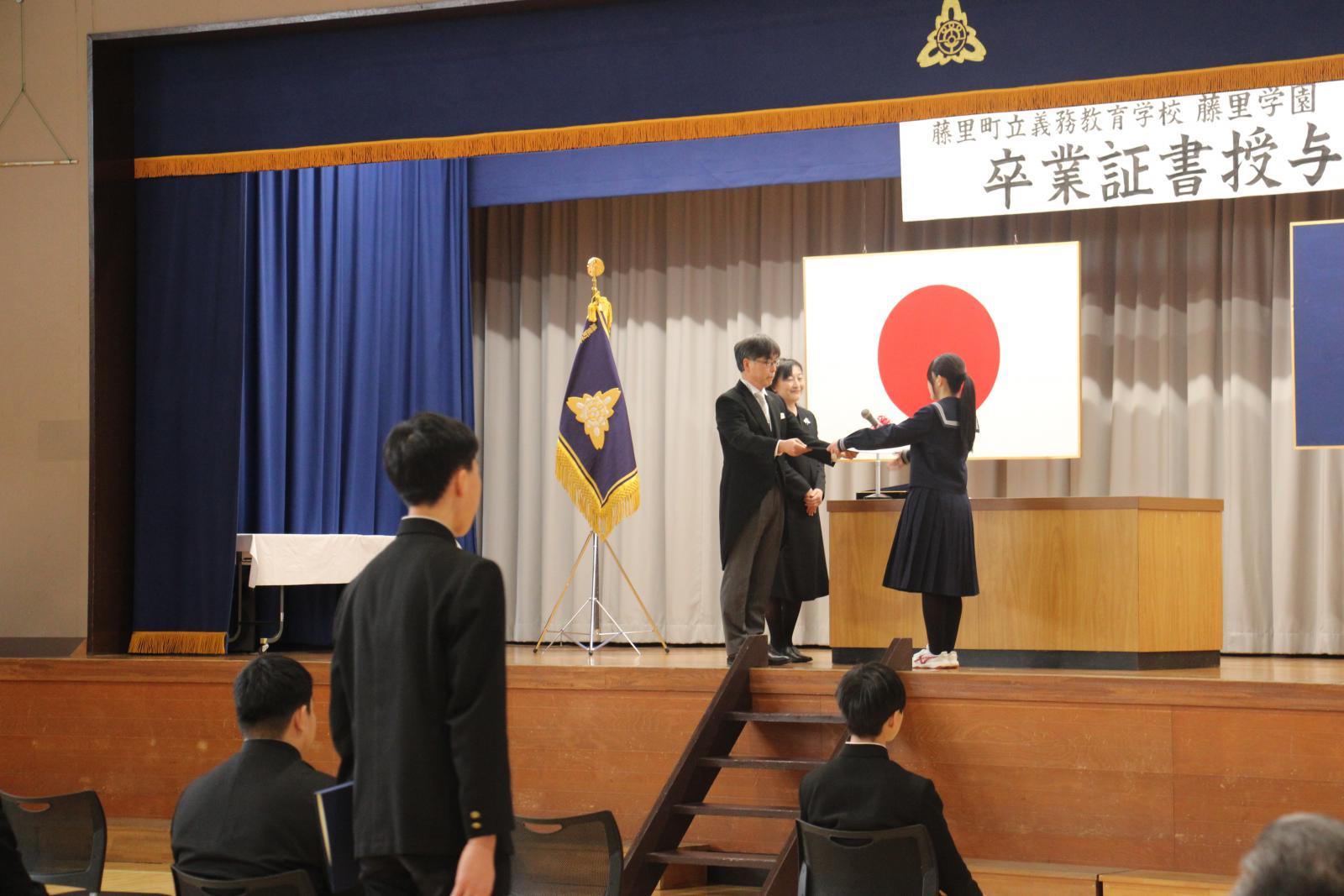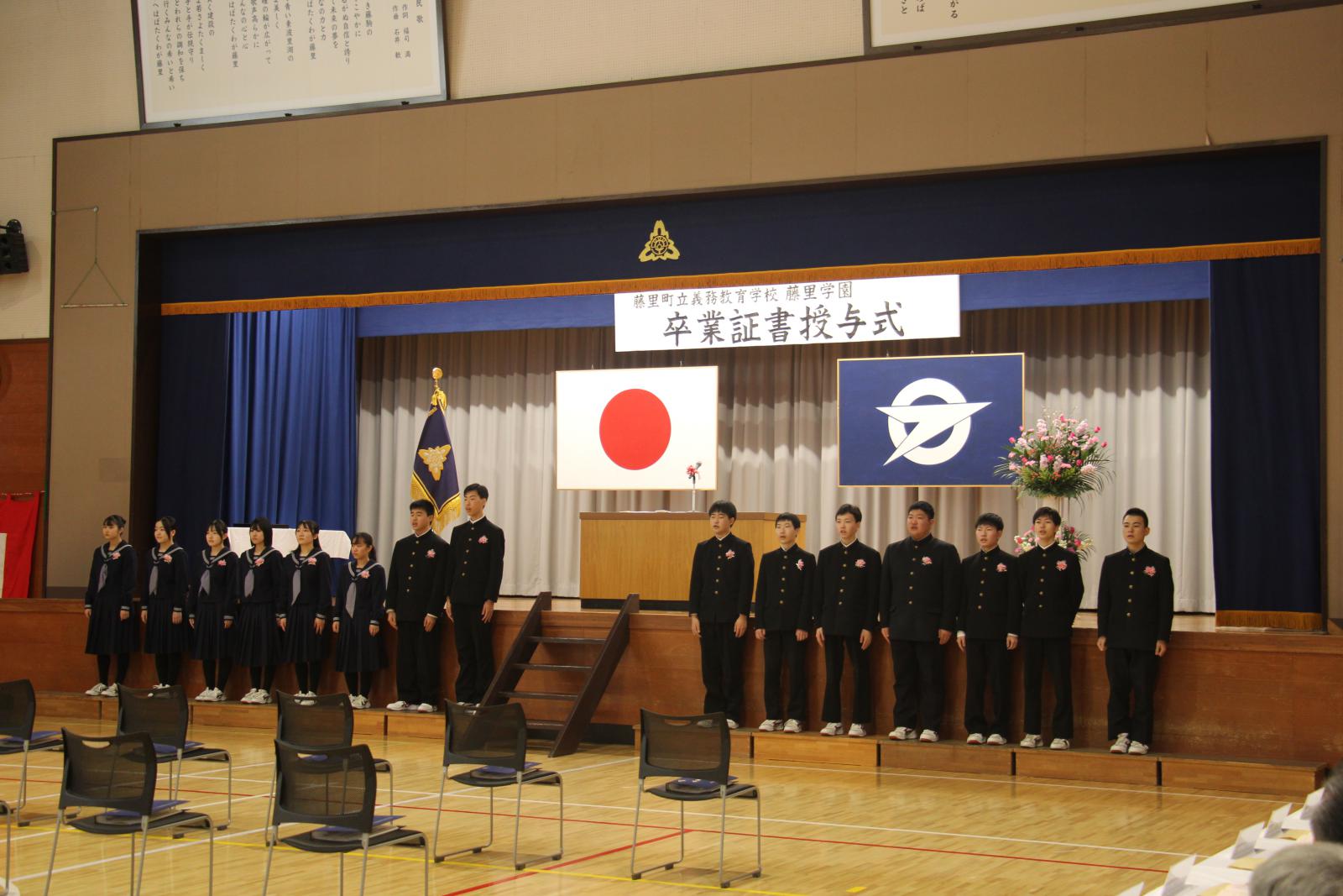 2026.03.07 義務教育学校藤里学園 卒業証書授与式 【まちのできごと・みんなのわだい(web版)】 3月7日(土)、藤里町立義務教育学校藤里学園の卒業証書授与式が行われました。 大切な仲間と過ごした日々の思い出を胸に、藤里学園9年生15名が旅立ちの日を迎えました。 ページ上部へ