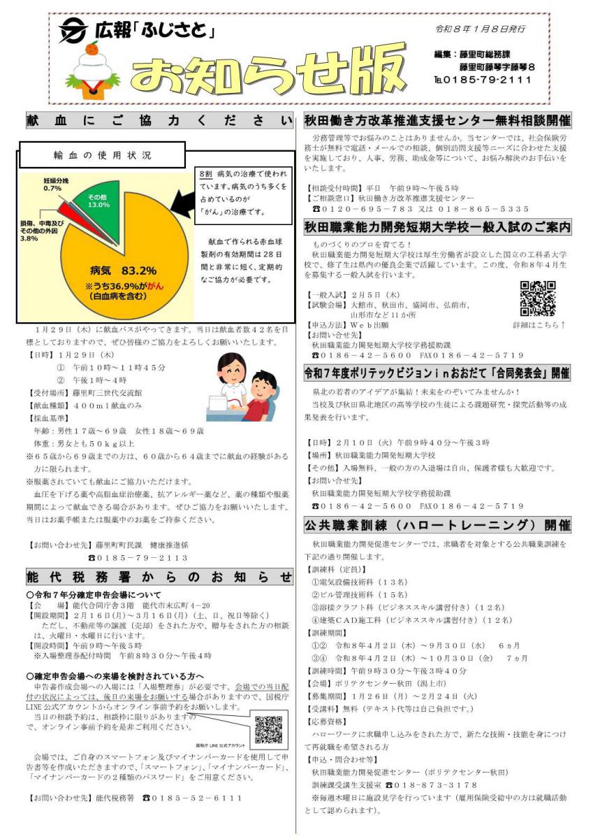 広報「ふじさと」お知らせ版(令和8年1月8日発行)